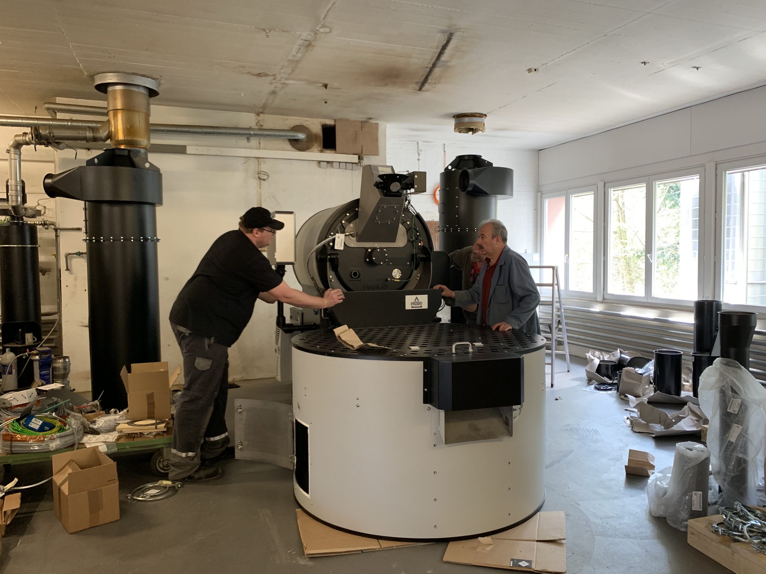 Die Installation der neuen Röstanlage Probat PRE60 ist für uns ein grosser Schritt. Die Anlage entspricht den neusten Standards und ermöglicht es uns unsere Qualität noch weiter zu steigern. Die Röstanlage ist komplett automatisiert, und Röstet die von uns vorgegeben Rezepte selbst, so können wir höchste Konstanz garantieren. Neben den Qualitätsstandards ermöglicht die neue Anlage auch ein viel schonenderes Arbeiten für unseren Röstmeister Jaime und starke Arbeitserleichterungen.